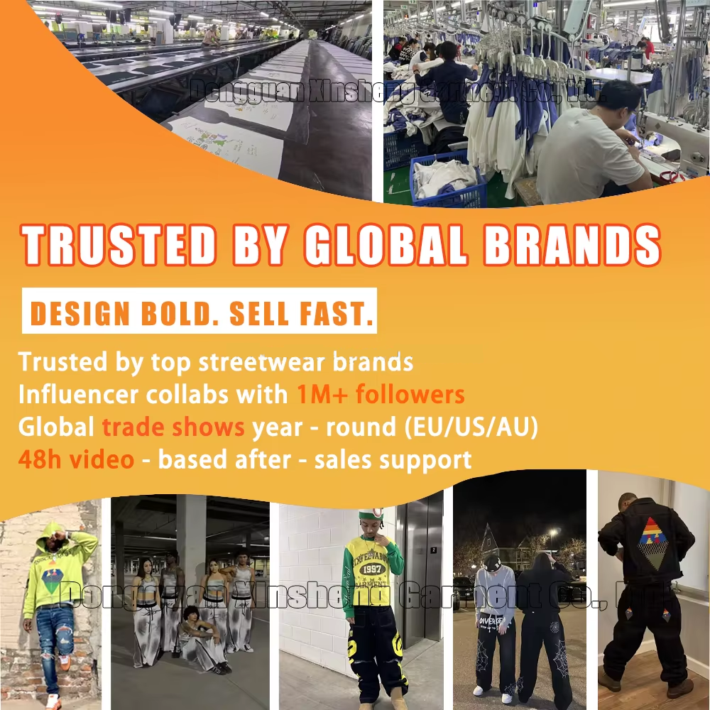 Ang webpage na ito ay nagtatampok ng mga produkto at serbisyo ng pasadyang T-shirt para sa kalalakihan mula sa Dongguan Xinsheng Garment Co., Ltd., isang propesyonal na tagagawa ng damit para sa kalalakihan na dalubhasa sa 100% cotton acid-wash distressed men's T-shirts na may contrast stitching, magagamit sa boxy, oversized, at cropped style. Nag-aalok ang kumpanya ng komprehensibong Mga serbisyo sa pasadyang OEM at ODM , nanggagaling diretso sa pabrika, tinatanggap ang mga pasadyang disenyo, sukat (karaniwan o pasadya), tela, kulay (kasama ang mga swatch na ibinibigay para sa pagpili), logo, label, plastik na pakete, at marami pang iba, kasama ang MOQ na 50-100 piraso bawat disenyo .